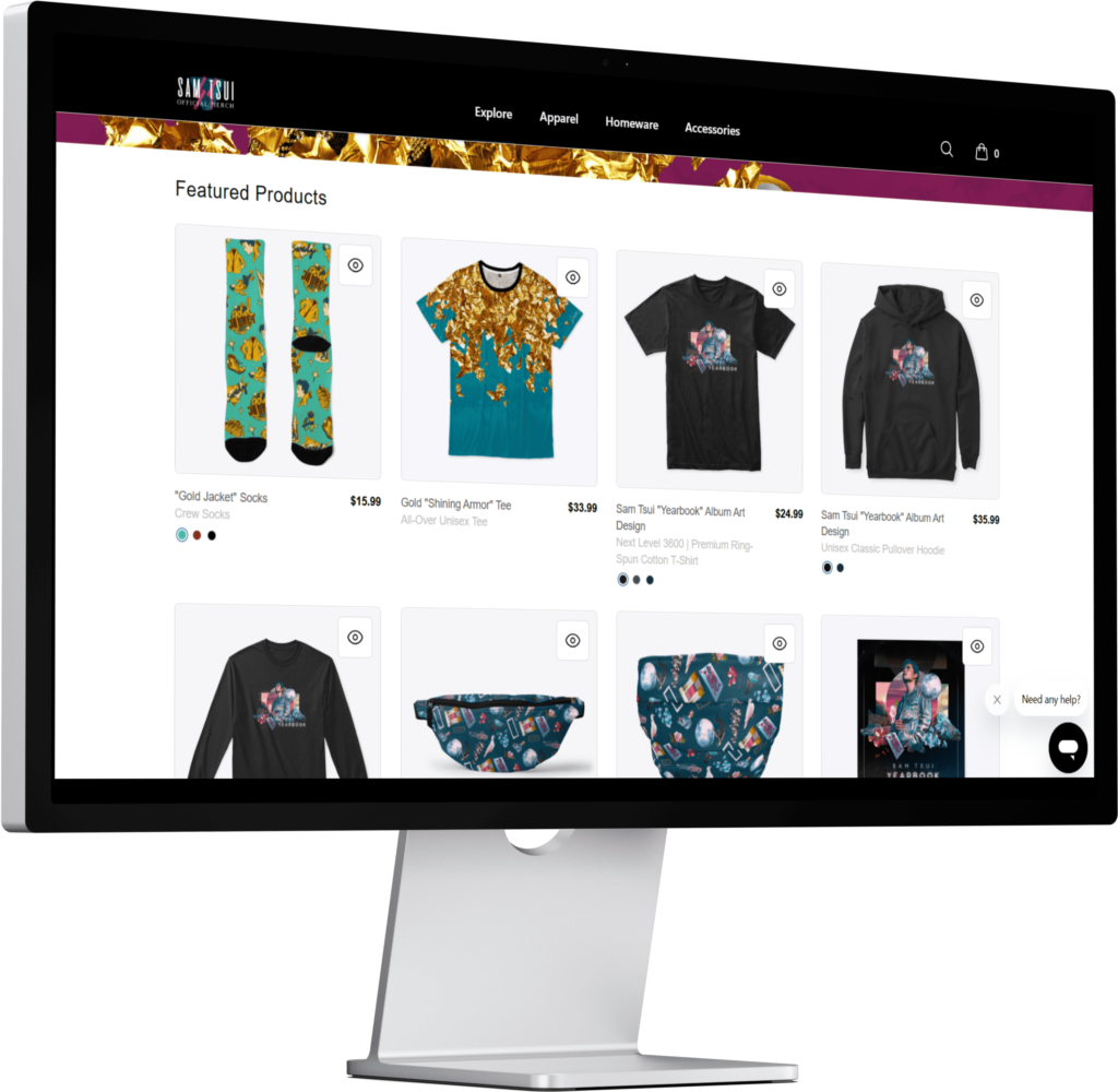 Check out Sam’s merch which includes t-shirts, hoodies and prints. What are you waiting for? Grab your merch!